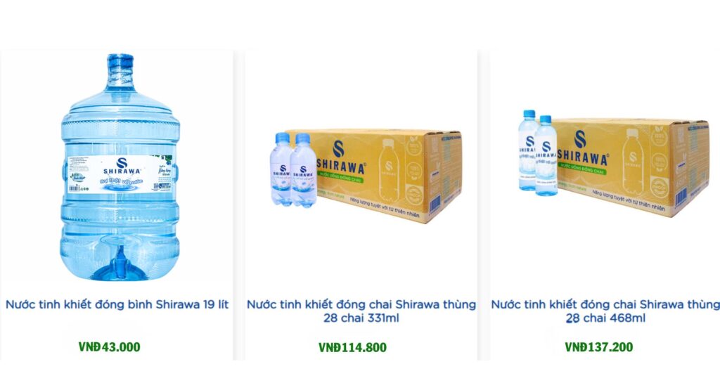 Giá nước bình 19L Shirawa là bao nhiêu?