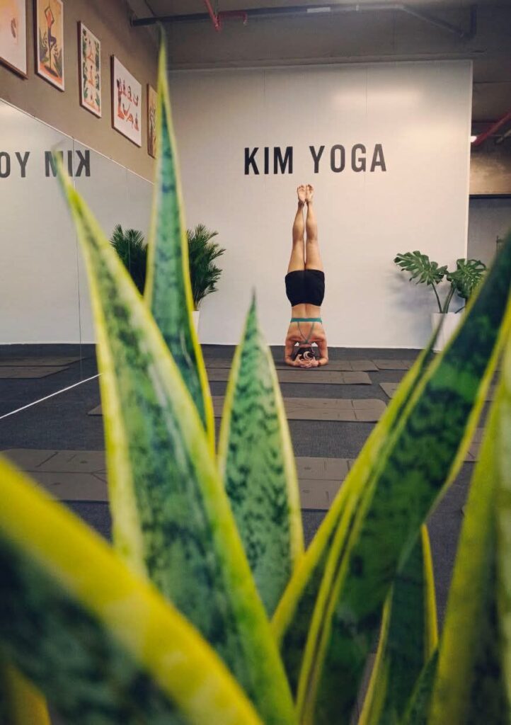 . 📸 Góc trước logo “KIM YOGA” hoặc bên cửa sổ lớn