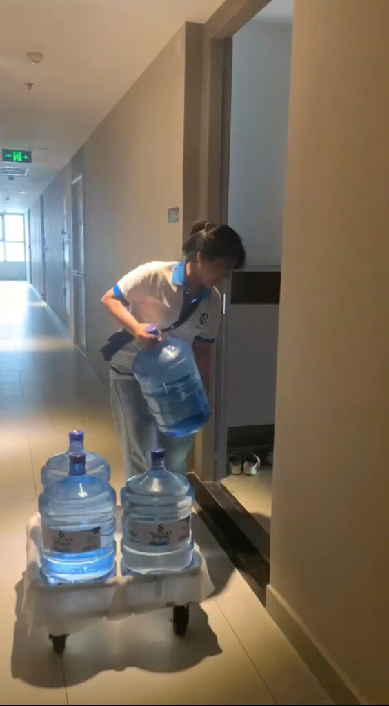Hỗ trợ đặt nước lên máy nóng lạnh, kệ (nếu cần)